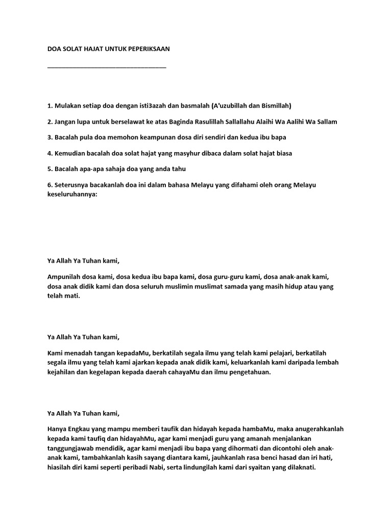 Doa Peperiksaan Solat Hajat Pdf
