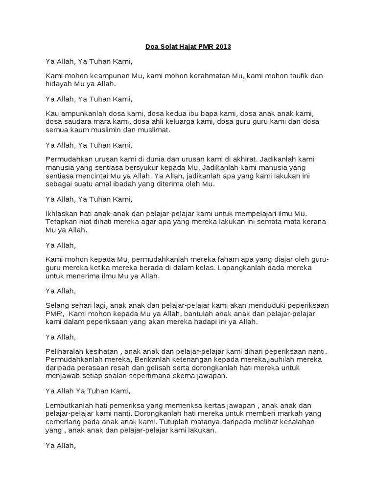 Doa Solat Hajat Khusus Pmr Spm Stpm Pdf